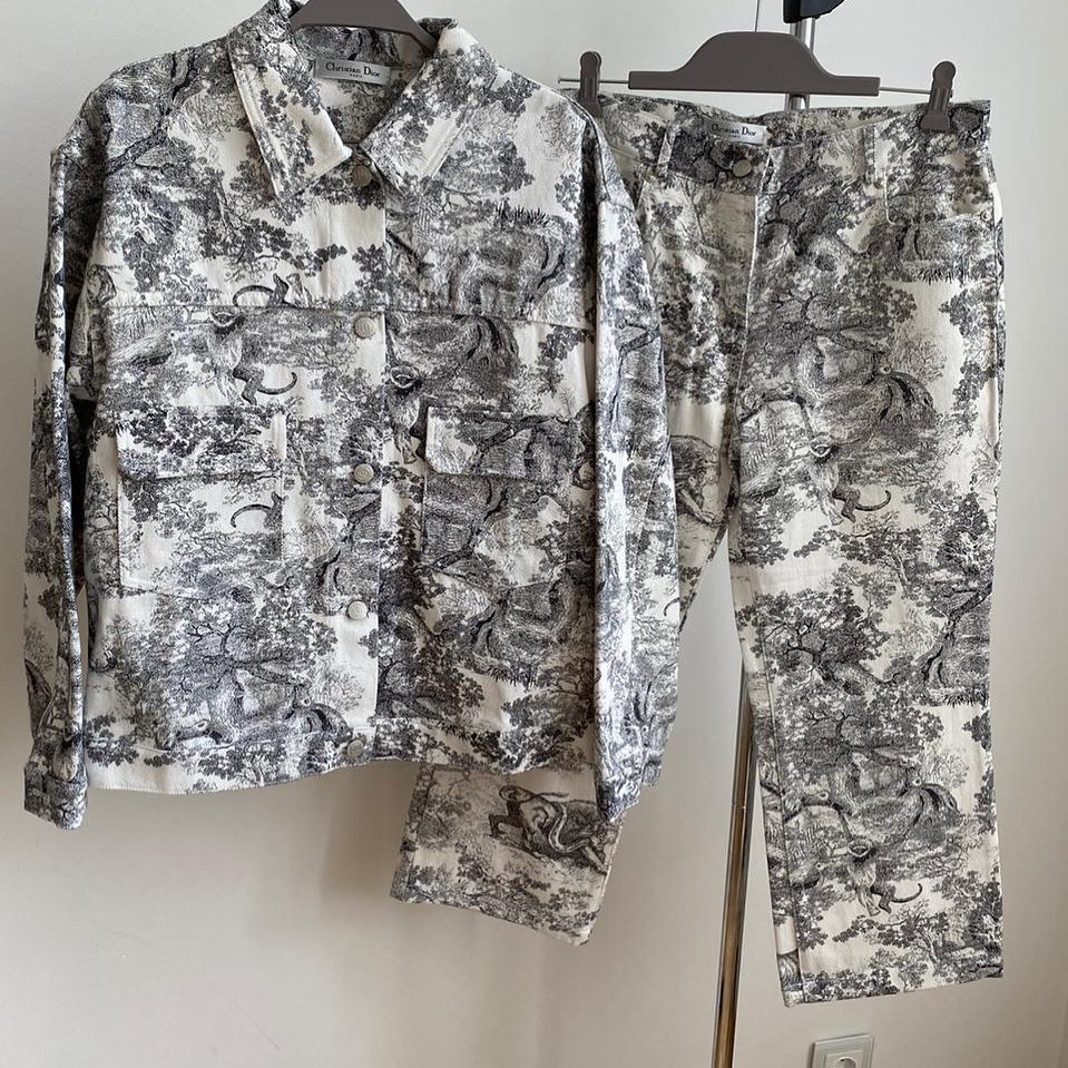 Женский костюм Christian Dior LUX-31499 – это элегантный комплект, состоящий из куртки и брюк, выполненный в классическом стиле бренда. Оригинальный принт с изображением лесных сцен придает изделию уникальность и изысканность, делая его заметным элементом гардероба. Комплект идеально подходит для создания стильных образов как в повседневной жизни, так и для особых случаев, подчеркивая безупречный вкус владелицы.