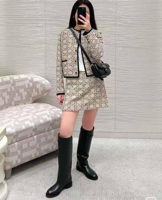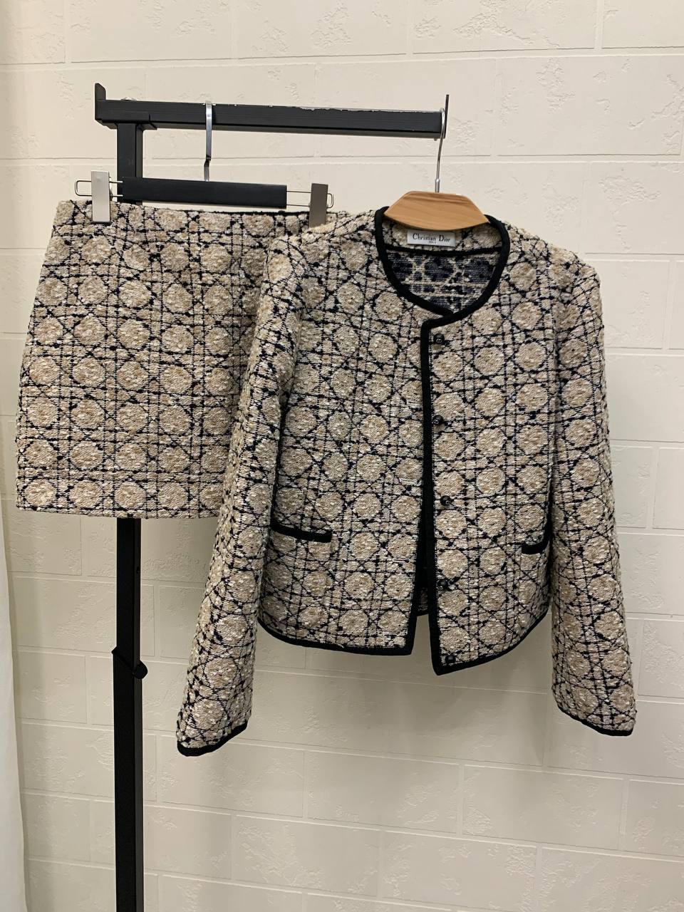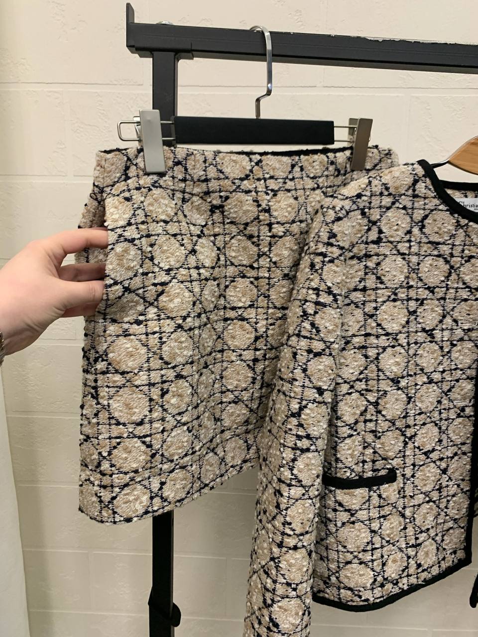 Костюм женский Christian Dior LUX-114318 - это элегантный костюм, состоящий из жакета и юбки. Костюм выполнен в классическом стиле с характерным для бренда узором. Этот костюм подойдет как для деловых встреч, так и для особых случаев.