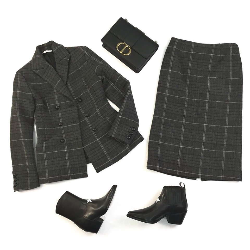 Костюм женский Christian Dior LUX-20233 – это элегантный и стильный комплект, состоящий из пиджака и юбки. Дизайн в клетку придает ему классический, но в то же время актуальный вид. Этот костюм идеально подходит для создания утонченных образов в деловом или повседневном стиле.
