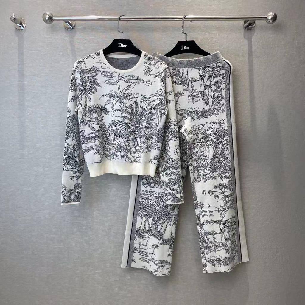 Костюм женский Christian Dior LUX-94230 представляет собой элегантный комплект, который сочетает в себе стиль и комфорт. Костюм выполнен в черно-белой гамме с уникальным принтом, напоминающим тропические джунгли. Идеально подходит для создания стильного образа в повседневной жизни.