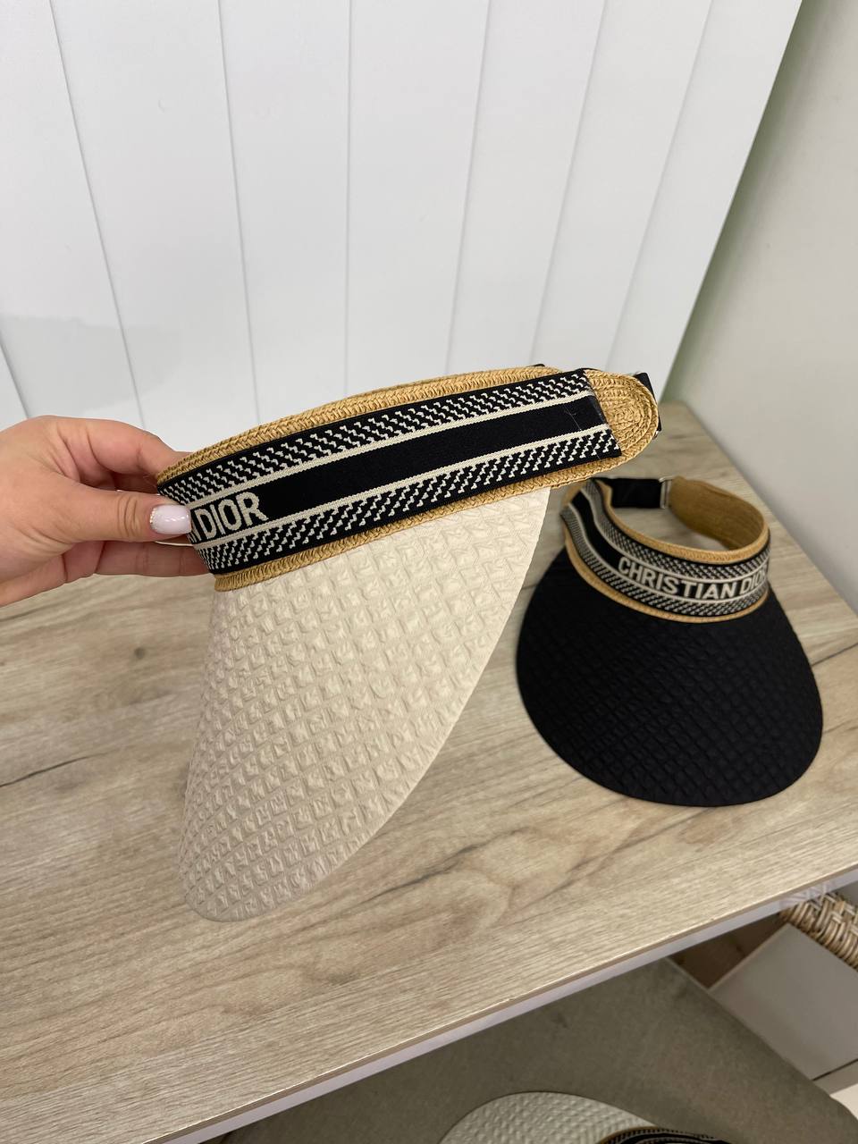 Козырек Christian Dior, артикул LUX-86901, представляет собой стильный аксессуар для защиты от солнца, выполненный в белом цвете. Козырек имеет текстурированную поверхность, создающую интересный визуальный эффект. Модель предназначена для использования в летний период, обеспечивая комфорт и защиту от солнечных лучей.