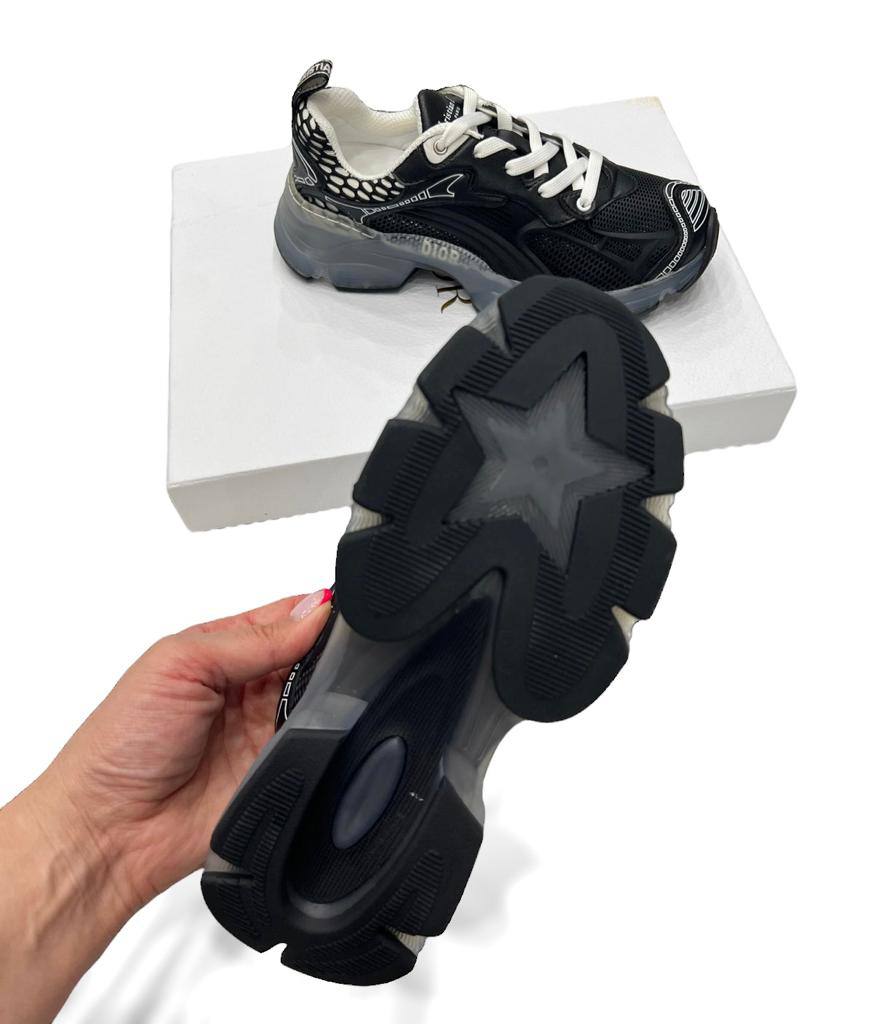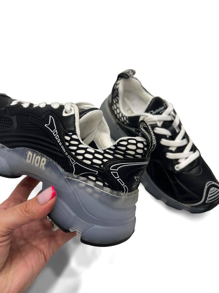 Кроссовки Christian Dior LUX-94414 – это стильная обувь в спортивном стиле. Черный цвет кроссовок с белыми элементами создает контрастный и запоминающийся образ, подходящий для повседневной носки. Прозрачная подошва придает современный акцент.