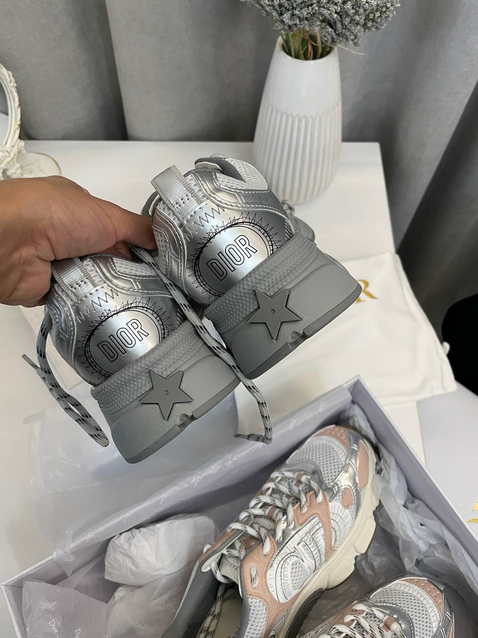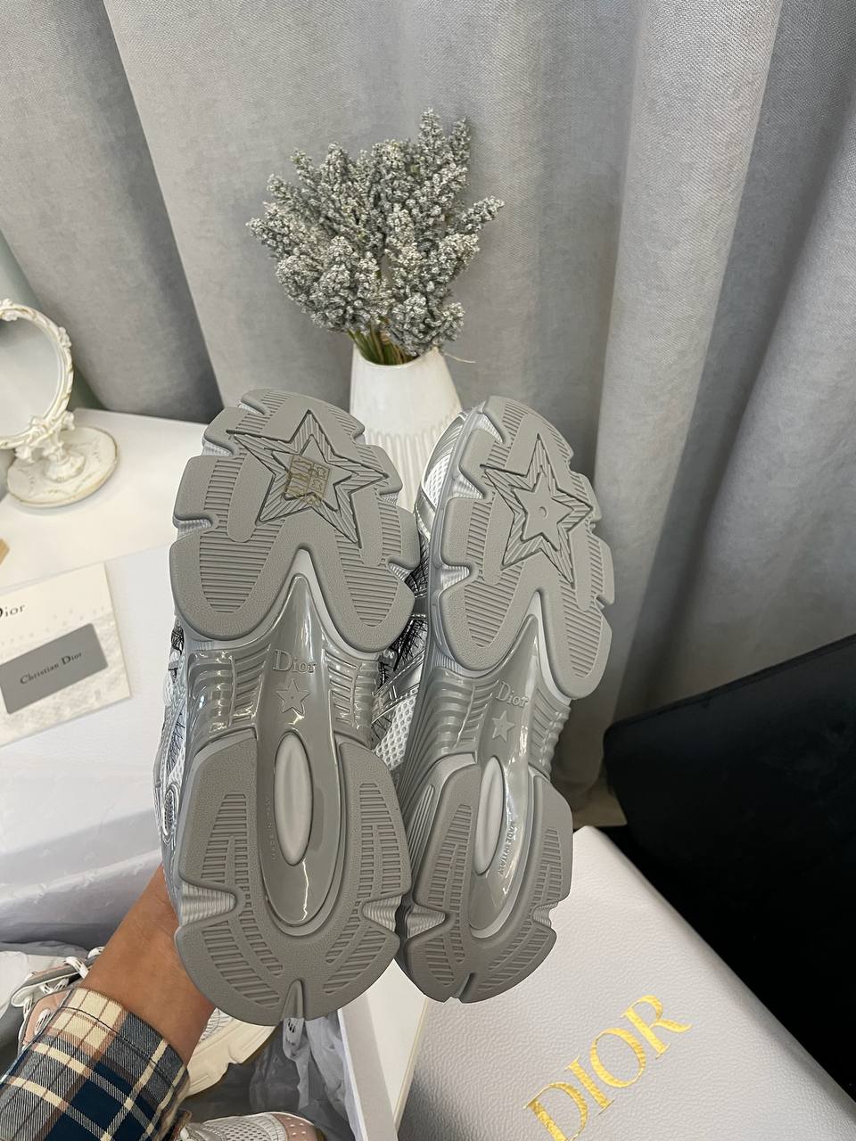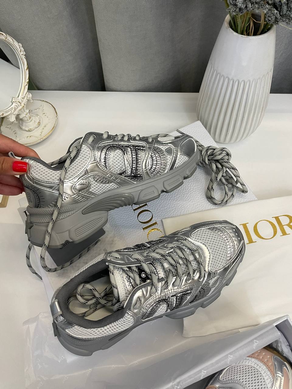 Кроссовки Christian Dior LUX-110202 - это стильная модель, выполненная в серебристом цвете. Дизайн кроссовок сочетает в себе спортивный стиль и элегантность, что делает их отличным выбором для повседневной носки и создания модных образов. Кроссовки отличаются узнаваемым дизайном с логотипом бренда.