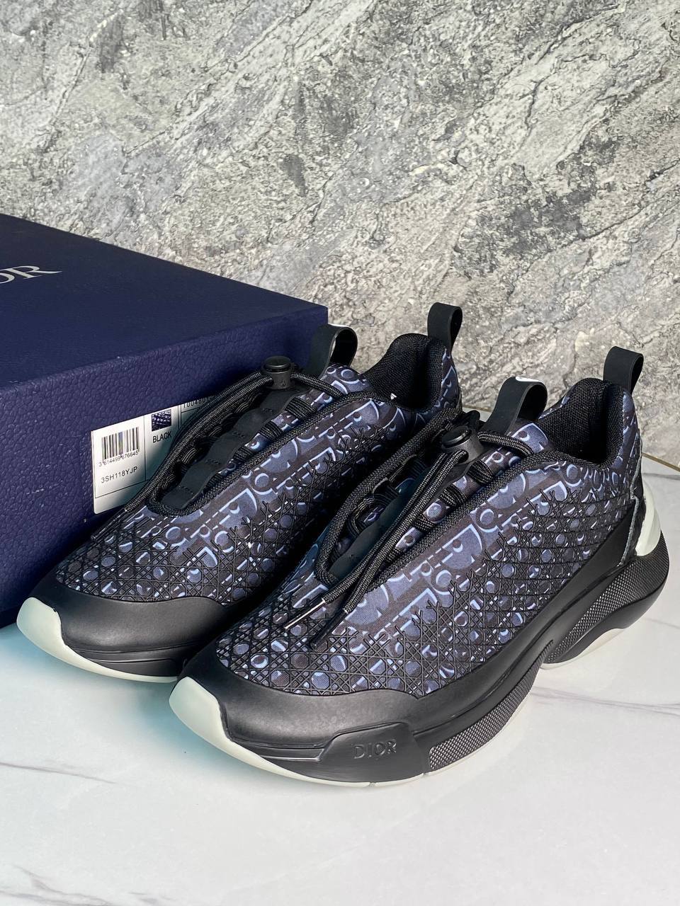 Кроссовки Christian Dior LUX-115590 представляют собой стильную обувь, которая сочетает в себе элегантность и спортивный стиль. Эти кроссовки, выполненные в основном в черно-синей цветовой гамме с фирменным узором, выглядят современно и модно. Они идеально подойдут для повседневной носки, добавляя образу изысканности и комфорта.
