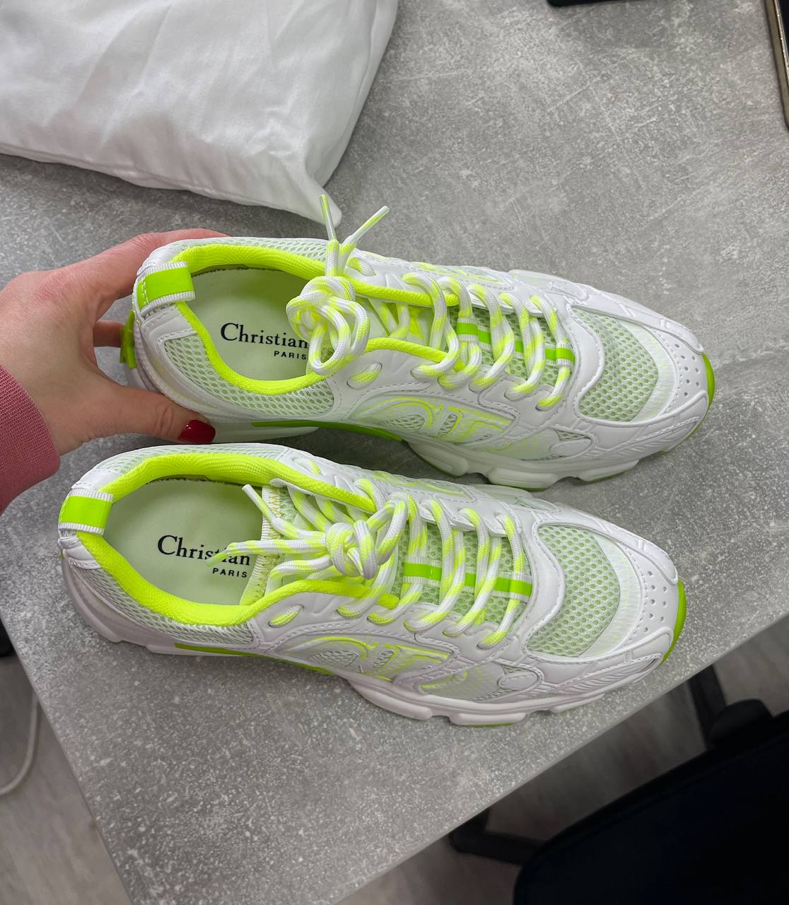 Кроссовки Christian Dior LUX-116117 — это стильная модель от известного бренда. Они выполнены в белом цвете с яркими неоновыми деталями. Дизайн кроссовок сочетает в себе элементы спортивного и повседневного стилей, что делает их подходящими для различных образов.