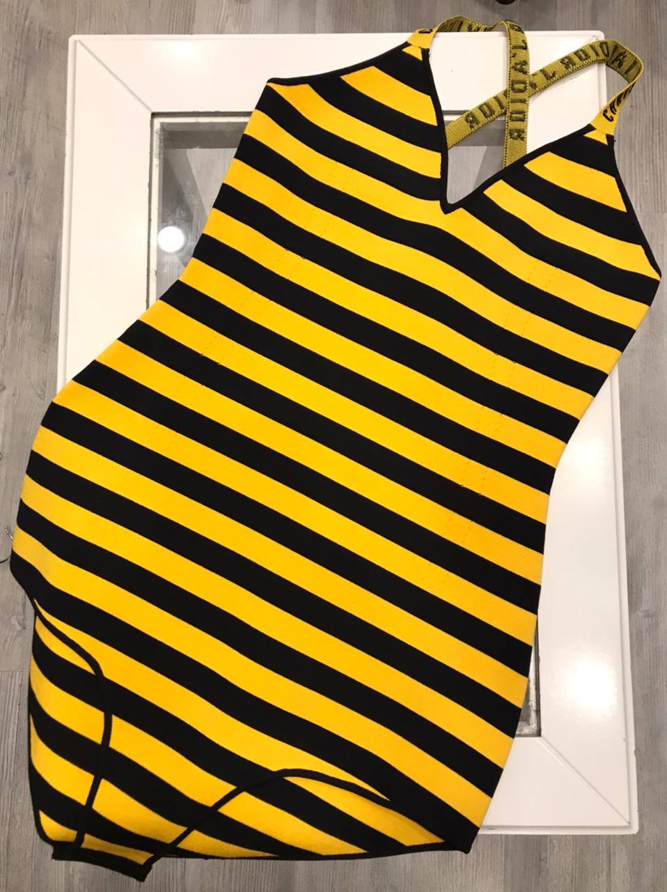 Купальник Christian Dior LUX-51999 представляет собой яркую и стильную модель, выполненную в узнаваемом черно-желтом полосатом дизайне, характерном для модного дома Dior. Модель идеально подойдет для пляжного отдыха и подчеркнет вашу индивидуальность.