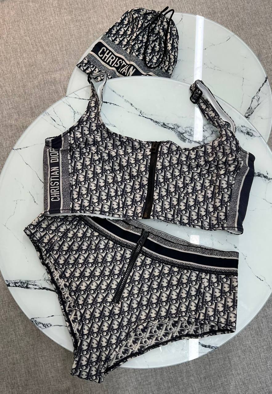 Купальник Christian Dior LUX-119561 представляет собой стильный комплект для пляжного отдыха или бассейна. Комплект состоит из топа с молнией и плавок-шортиков, выполненных в узнаваемом дизайне с монограммой бренда в черно-белых тонах. Купальник идеально подойдет для тех, кто ценит элегантность и комфорт.