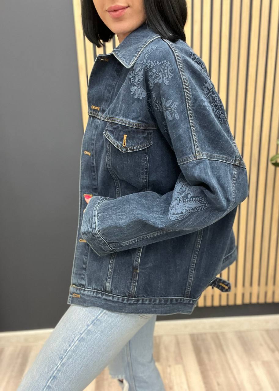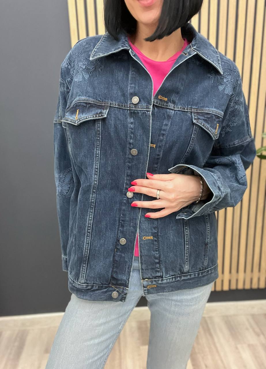 Куртка Christian Dior LUX-103018 — это элегантная джинсовая куртка, сочетающая в себе классический стиль и современный дизайн. Она выполнена в темно-синем цвете с вышивкой на плечах, добавляющей изысканности. Эта куртка подойдет для создания стильных и комфортных образов.