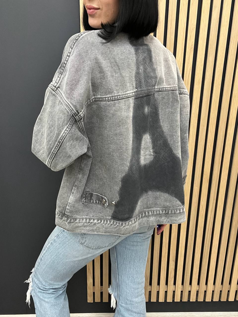 Куртка женская Christian Dior LUX-105287 представляет собой стильную джинсовую куртку оверсайз фасона. Куртка выполнена в сером цвете, имеет классический силуэт с акцентом на объем. Такая куртка идеально подойдет для повседневного гардероба.