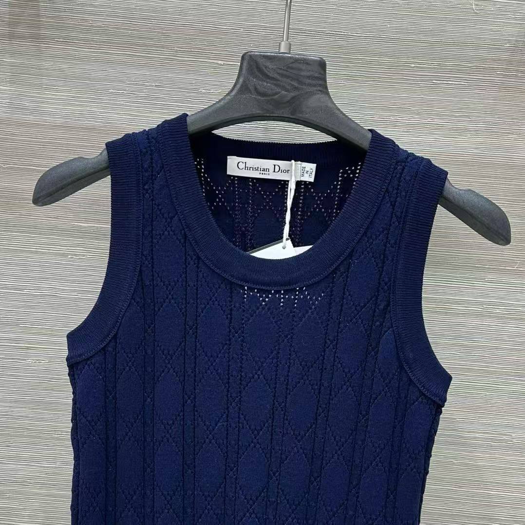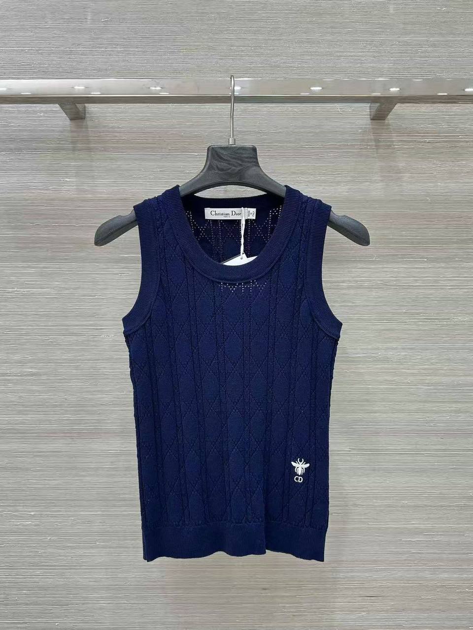 Майка Christian Dior LUX-118117 – это стильный предмет гардероба в глубоком синем цвете, который идеально подходит для создания элегантных и повседневных образов. Текстура майки выполнена с использованием ажурного узора, добавляющего изысканности. Дизайн подчеркнут логотипом бренда.