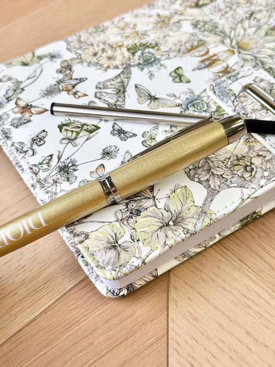 Набор Christian Dior LUX-113576 представляет собой элегантный комплект для записей. В набор входит стильный ежедневник с цветочным принтом и ручка. Белый цвет и деликатный рисунок придают ему изысканный вид.