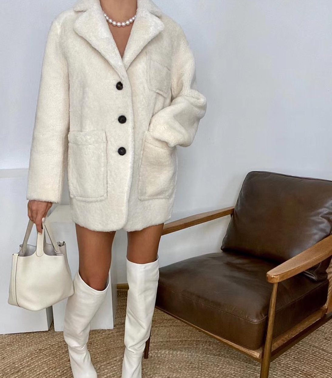 Пальто Christian Dior LUX-39578 представляет собой элегантную модель, выполненную в кремовом оттенке. Это изделие средней длины с отложным воротником и застежкой на пуговицы. Дизайн пальто отличается минимализмом и изысканностью, присущей бренду Christian Dior, что делает его универсальным элементом гардероба.