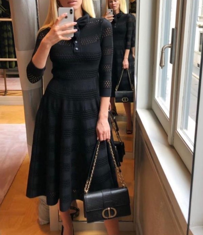Представленное платье Christian Dior LUX-36314 – это элегантное изделие, сочетающее в себе классический стиль и современные детали. Благодаря приталенному силуэту и расклешенной юбке, оно выгодно подчеркивает фигуру. Вязаная фактура с ажурными вставками придает платью особый шарм и изысканность. Идеально подойдет для особых случаев и вечерних выходов.