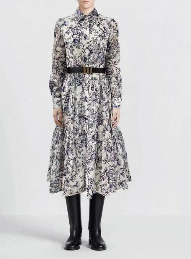 Платье Christian Dior LUX-80898 представляет собой изысканное изделие в элегантном стиле. Платье выполнено в светлых тонах с темно-синим узором, имеет длинные рукава и пояс, подчеркивающий талию. Идеально подходит для создания утонченного и запоминающегося образа.