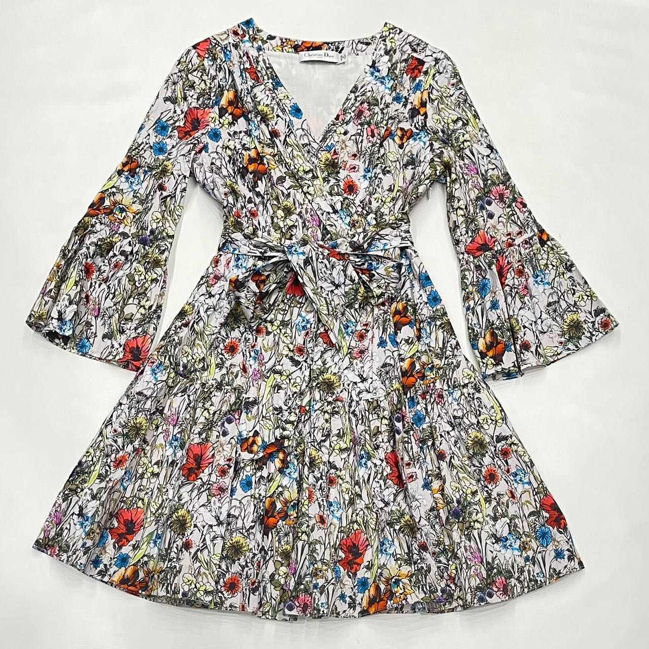 Платье Christian Dior LUX-41978 – это изысканное летнее платье с ярким цветочным принтом, которое добавит образу легкости и романтичности. Модель отличается V-образным вырезом, поясом на талии, который подчеркивает фигуру, и рукавами-клеш, придающими винтажный шик. Этот наряд идеально подходит для создания непринужденных и стильных образов.