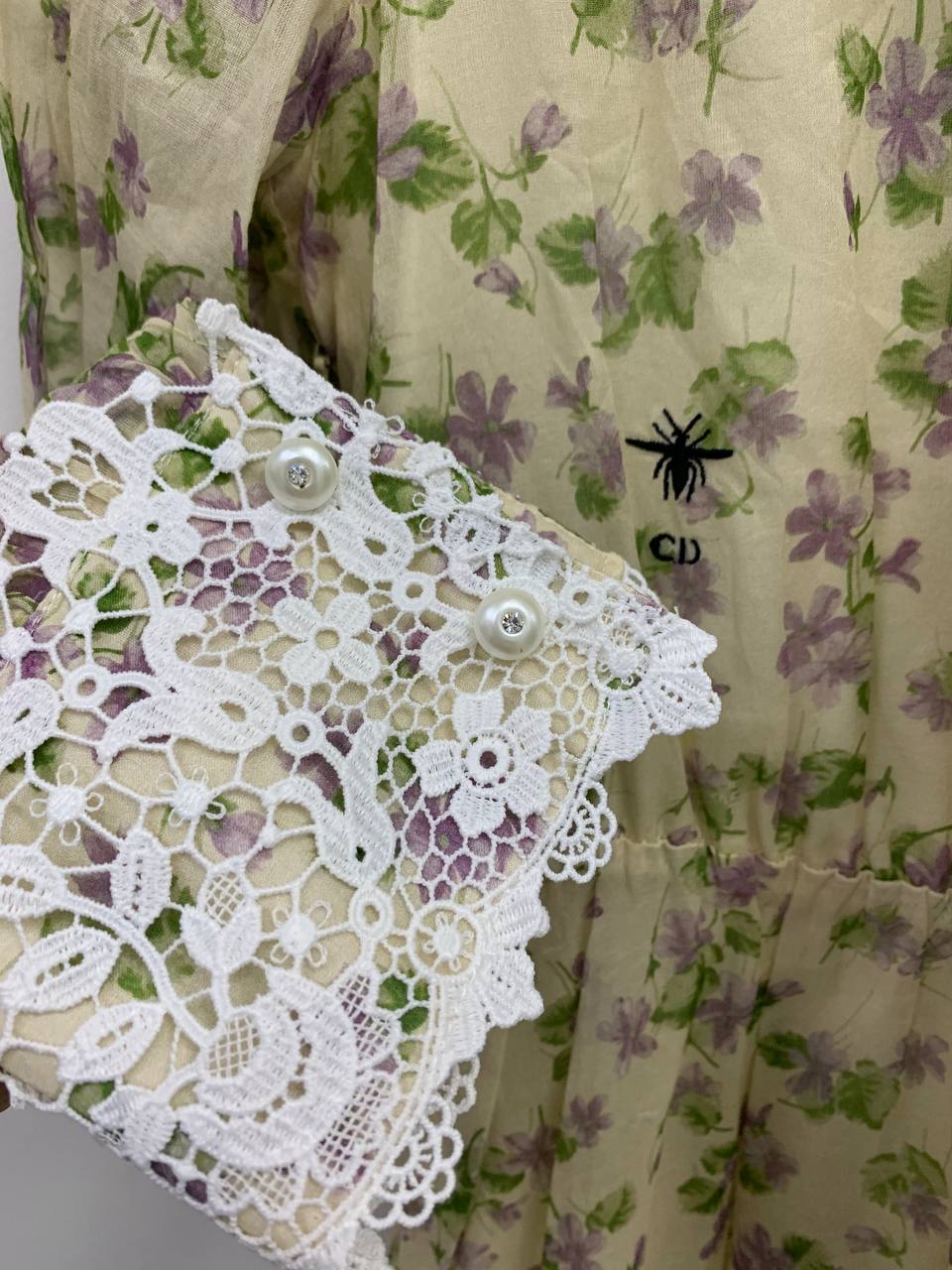 Платье Christian Dior LUX-85954 представляет собой элегантное платье с цветочным принтом. Дизайн сочетает в себе нежные оттенки и изысканные детали, такие как кружевные манжеты и подол. Это платье идеально подойдет для создания женственного и утонченного образа.