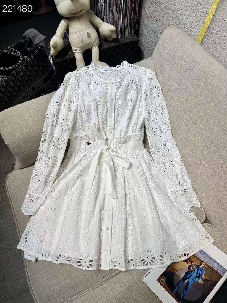 Платье Christian Dior LUX-88278, представленное на изображении, — это элегантное платье в белом цвете. Оно выполнено в романтическом стиле с кружевными деталями, длинными рукавами и поясом. Платье подойдет для создания женственного и утонченного образа.