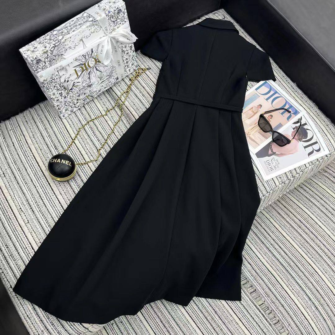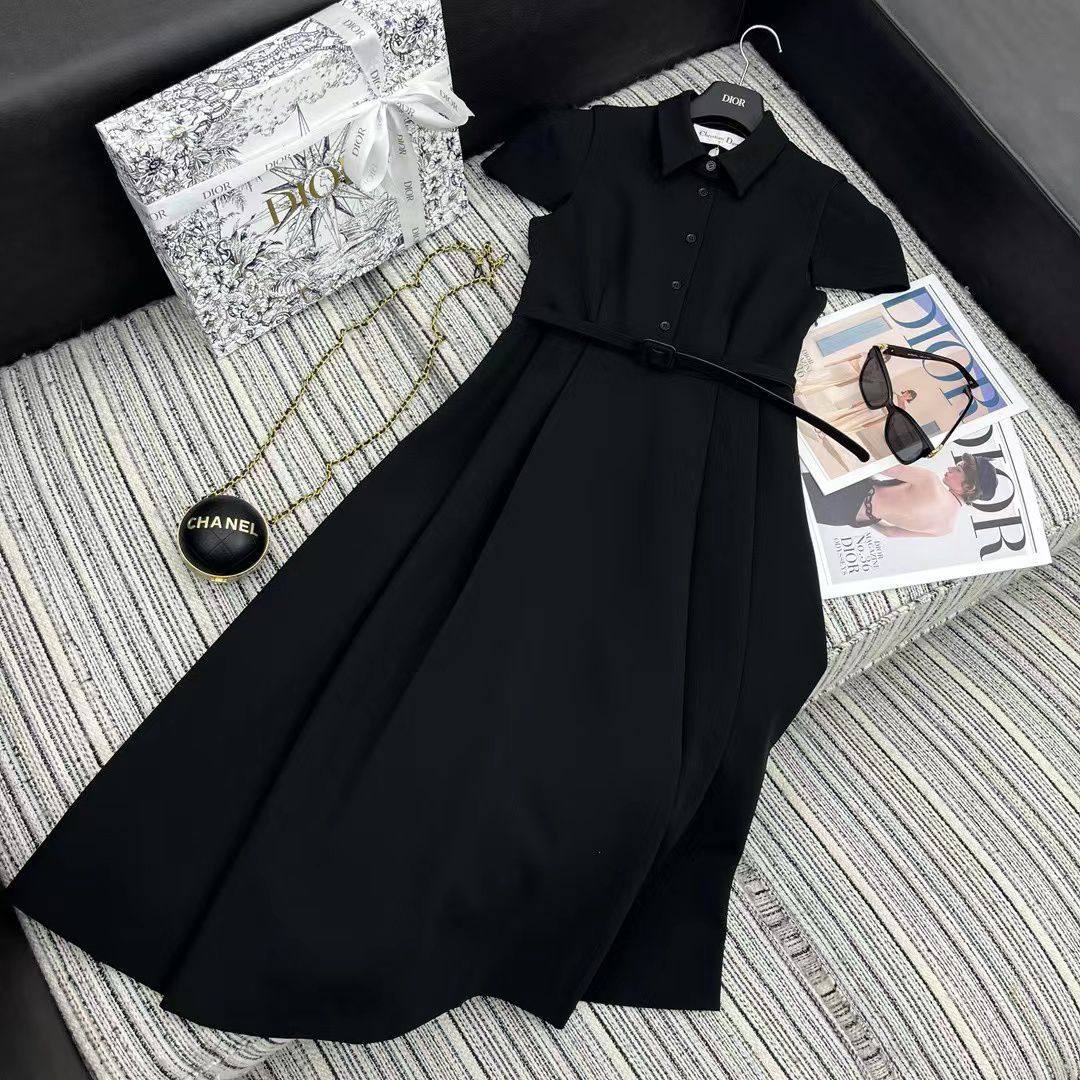 Платье Christian Dior LUX-100642 выполнено в классическом стиле, представляет собой элегантное черное платье с короткими рукавами и поясом. Оно имеет приталенный силуэт и может быть использовано для различных образов.