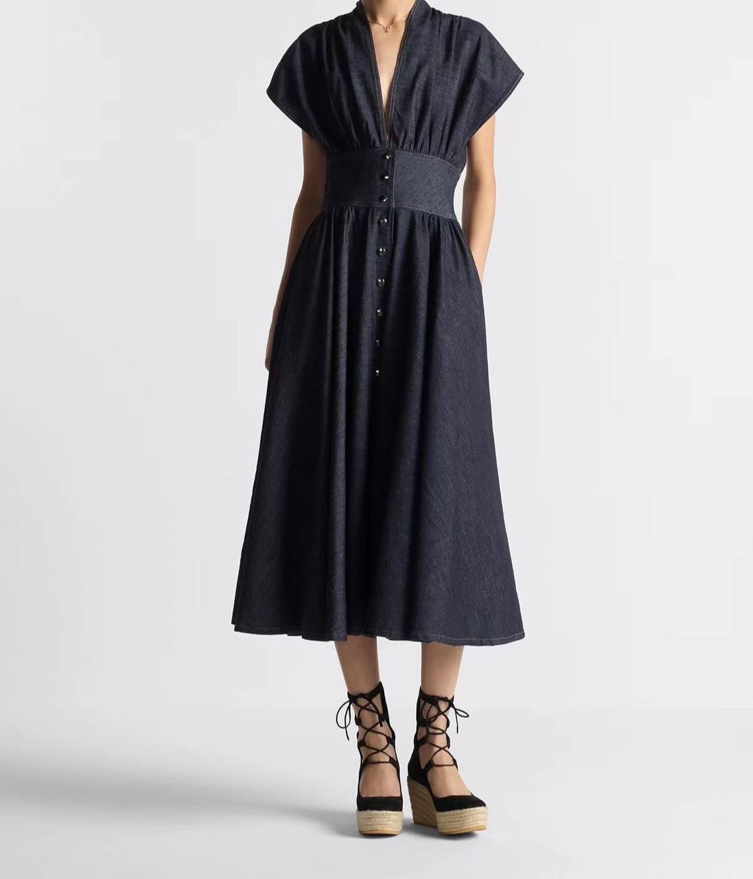 Платье Christian Dior LUX-107067 — это стильное платье-миди в классическом стиле, выполненное в темно-синем цвете. Имеет выразительный дизайн с акцентом на талии и аккуратной застежкой на пуговицах. Идеально подойдет для создания элегантного и повседневного образа.