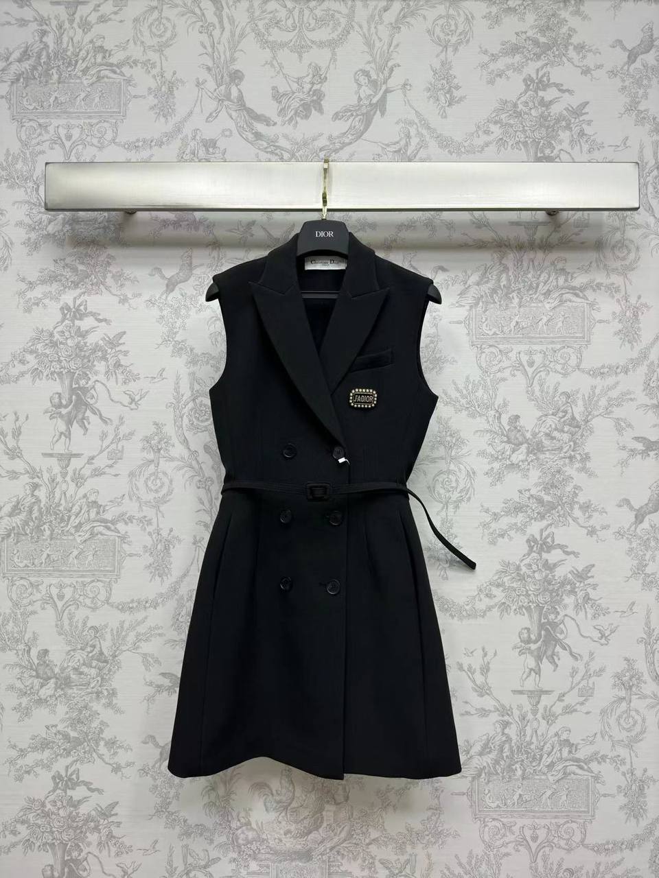 Платье Christian Dior LUX-105767 представляет собой стильное черное платье-пиджак без рукавов с элегантным дизайном. Оно имеет приталенный силуэт, который подчеркивается поясом на талии. Украшено декоративной брошью на груди. Это платье идеально подходит для создания элегантного и современного образа.