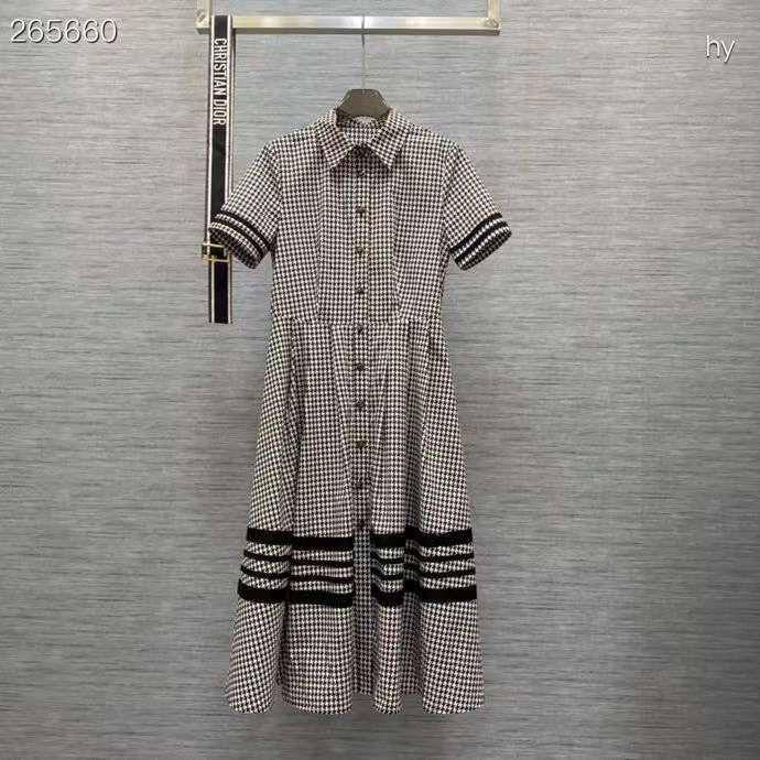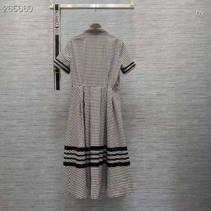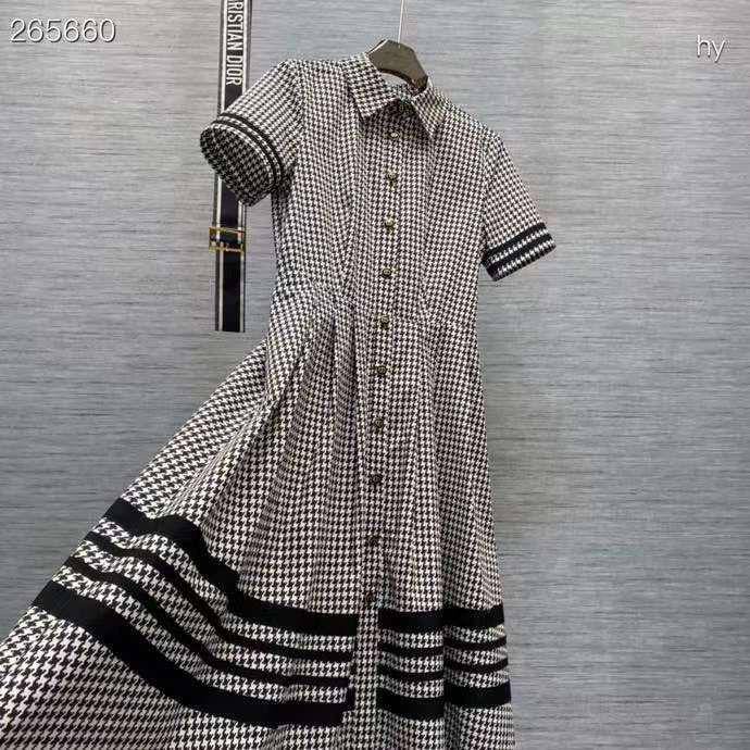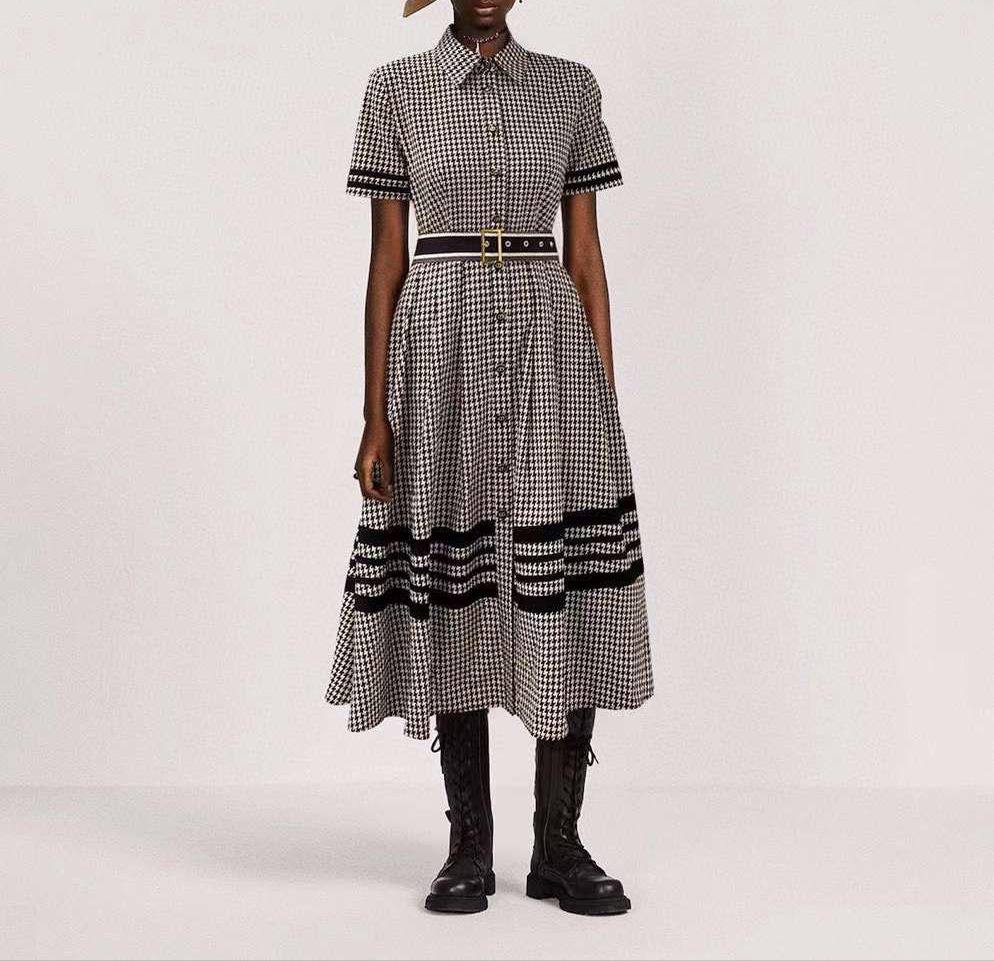 Платье Christian Dior LUX-106233 выполнено в классическом стиле с принтом "гусиная лапка". Платье представлено в черно-белой гамме, что делает его универсальным для различных образов. Оригинальное платье подойдет как для повседневной носки, так и для особых случаев.