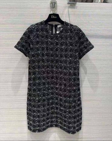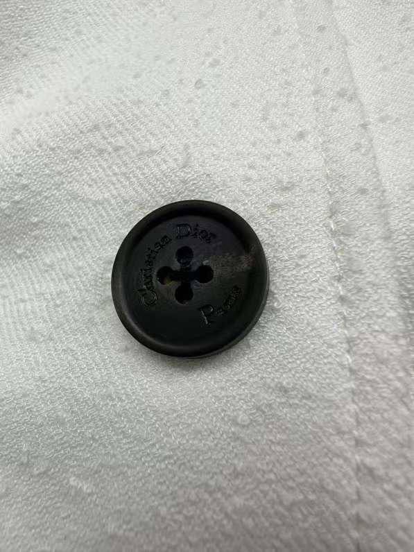 Платье Christian Dior LUX-109729 представляет собой элегантное белое платье в стиле рубашки с короткими рукавами и воротником. Модель дополнена тонким поясом с пряжкой, подчеркивающим талию, и черными пуговицами. Платье имеет простой, но изысканный крой, подходящий для различных случаев.