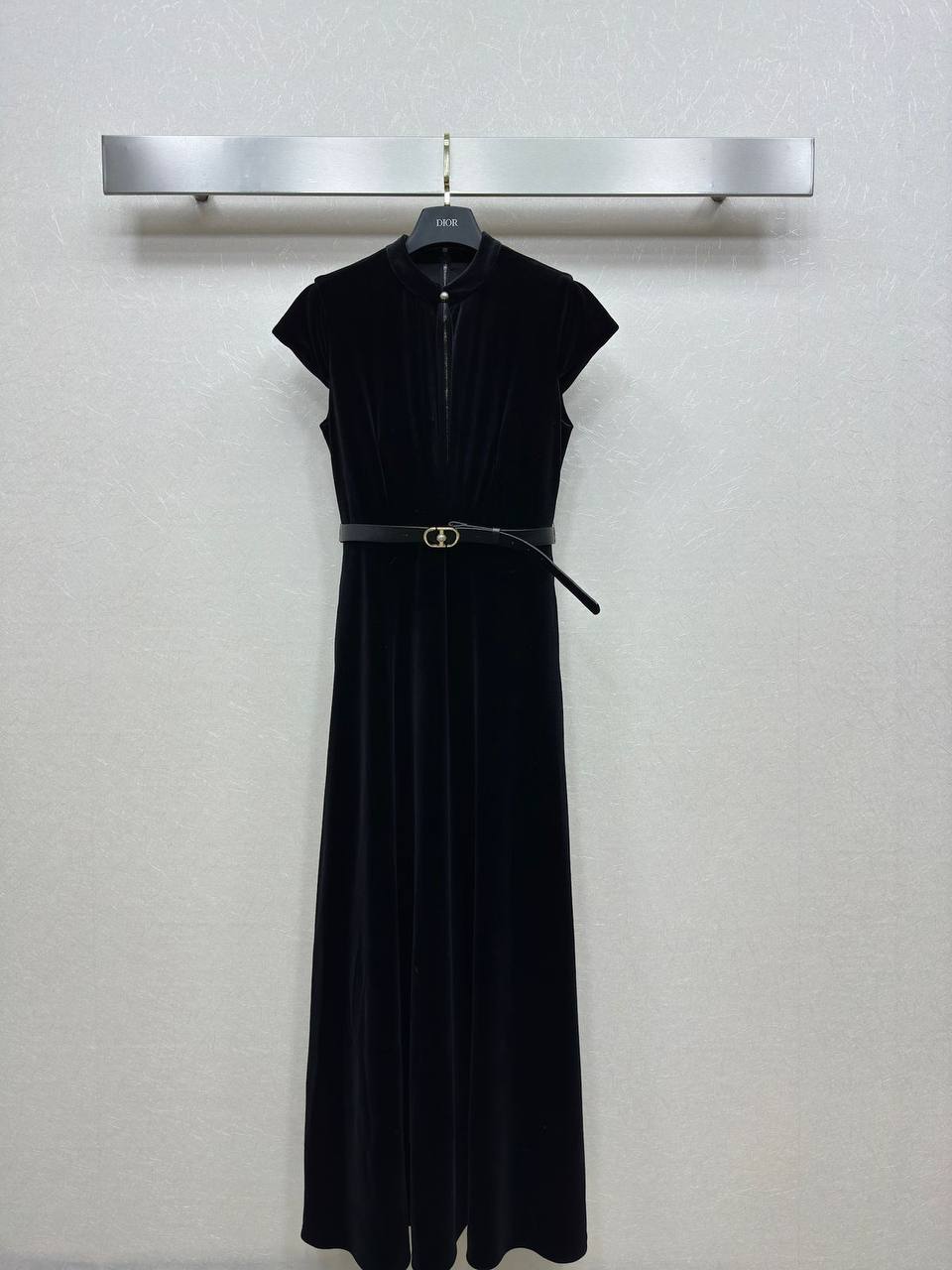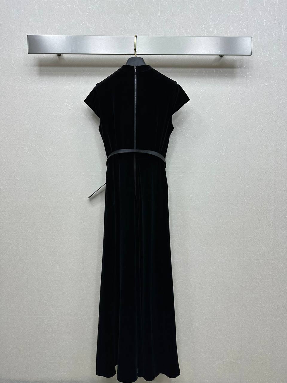 Платье Christian Dior LUX-113132 – элегантное черное платье в пол, выполненное в классическом стиле. Платье с короткими рукавами и воротником-стойкой дополнено поясом, подчеркивающим талию. Это идеальный выбор для создания изысканного образа.