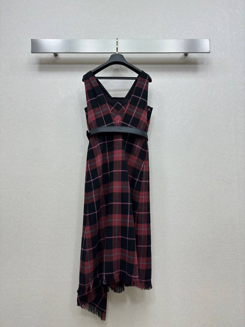 Платье Christian Dior LUX-113820 - это элегантное платье с ярким клетчатым узором в красно-черных тонах. Платье имеет асимметричный крой подола и дополняется черным ремнем, подчеркивающим талию. Это платье станет отличным выбором для создания стильного и запоминающегося образа.