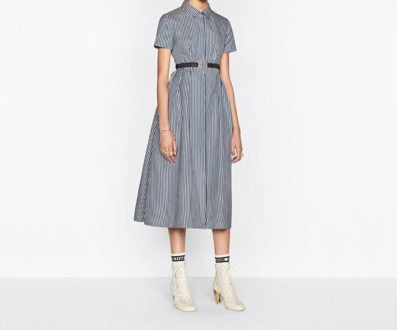 Платье Christian Dior LUX-63618 – это элегантное решение в полоску, сочетающее классический стиль и современный дизайн. Оно идеально подходит для создания утонченных повседневных и вечерних образов, подчеркивая изысканность и хороший вкус владелицы.