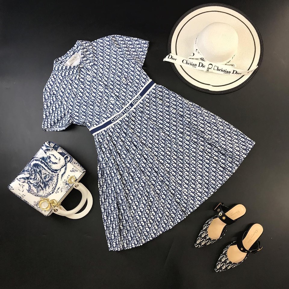 Платье Christian Dior LUX-13905 — это элегантное и женственное платье, выполненное в фирменном стиле бренда. Дизайн с узнаваемым монограммным принтом "Dior Oblique" и контрастной лентой на талии подчеркивает изысканность образа. Платье идеально подойдет для создания стильных летних комплектов, добавляя утонченности и шика.