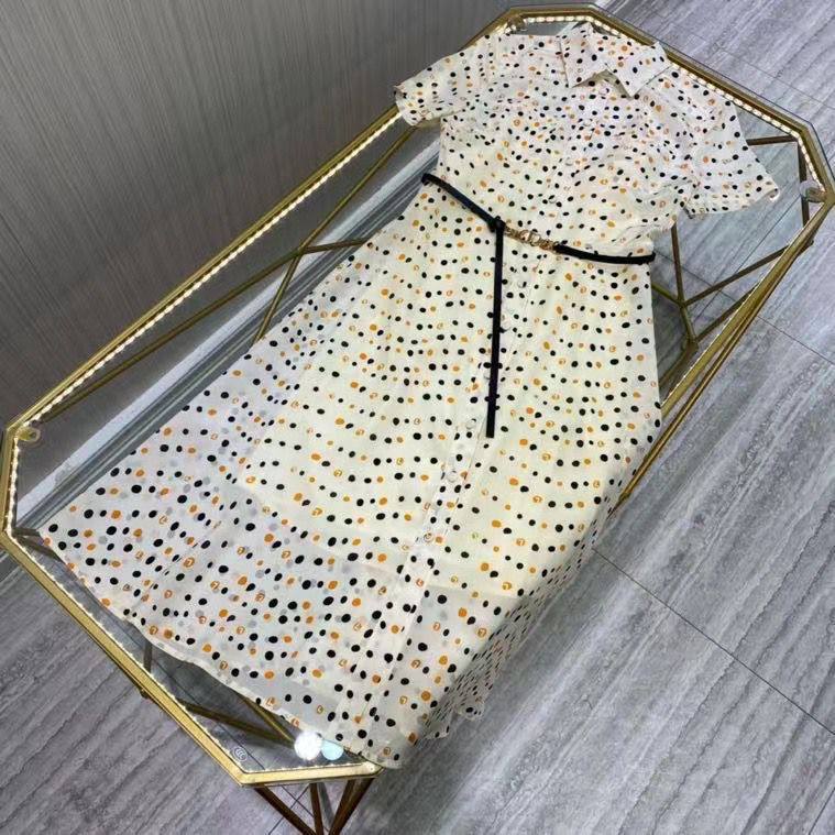 Платье Christian Dior LUX-68528 — это элегантное женское платье, выполненное в стиле casual, идеально подходящее для повседневных образов. Модель отличается легким и воздушным дизайном, украшенным принтом в виде мелкого гороха. Приталенный силуэт, подчеркнутый тонким ремнем, создает женственный и изящный образ.