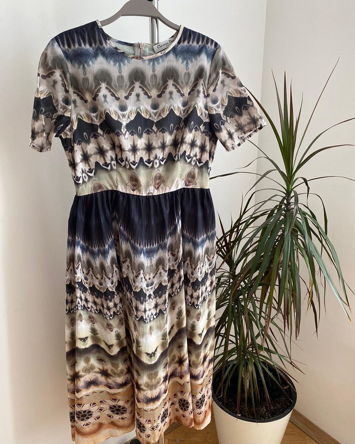 Платье Christian Dior LUX-31495 представляет собой стильное и уникальное изделие, выполненное в стиле тай-дай. Модель отличается оригинальным принтом, который придает платью неповторимый вид. Силуэт платья подчеркивает женственность, а короткие рукава делают его удобным для повседневной носки. Это платье идеально подойдет для создания яркого и запоминающегося образа.
