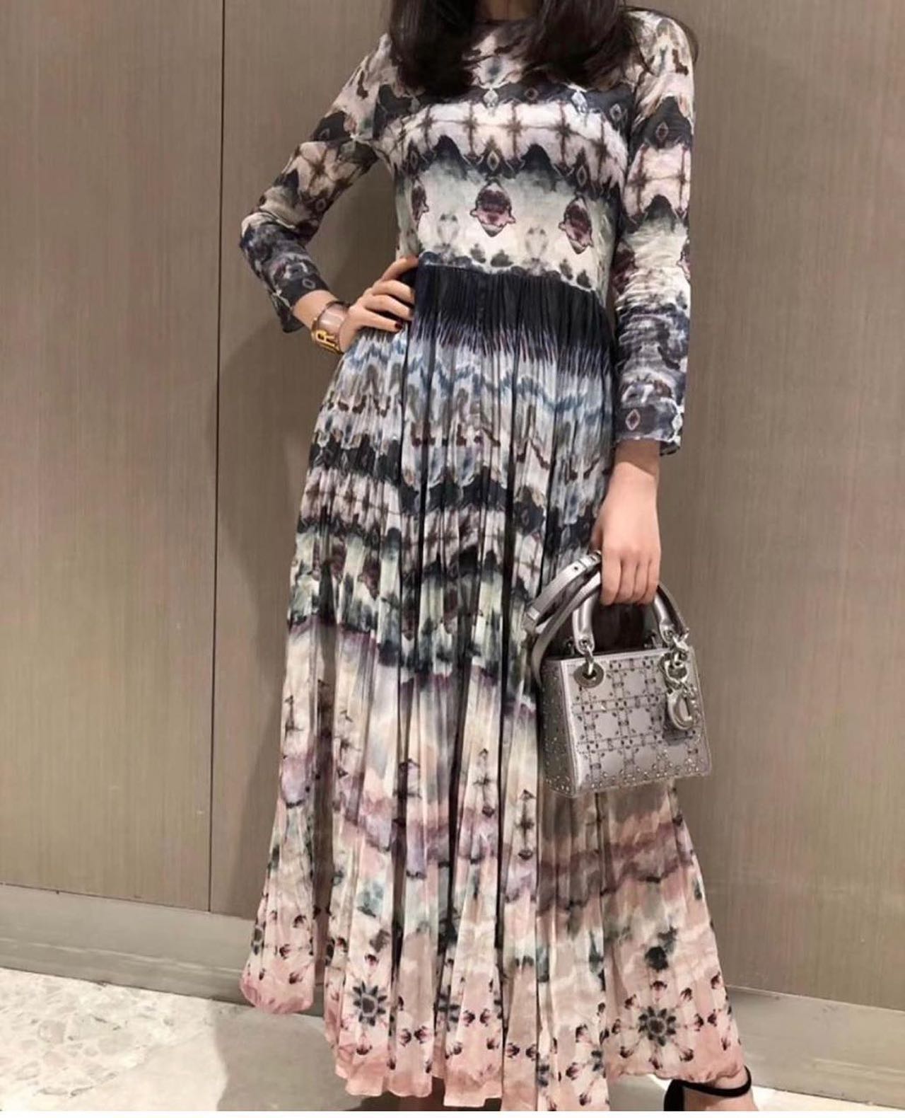 Это элегантное платье Christian Dior LUX-31904 с оригинальным принтом в стиле тай-дай и плиссированной юбкой. Модель идеально подходит для создания изысканных образов для особых случаев или для элегантного повседневного стиля.
