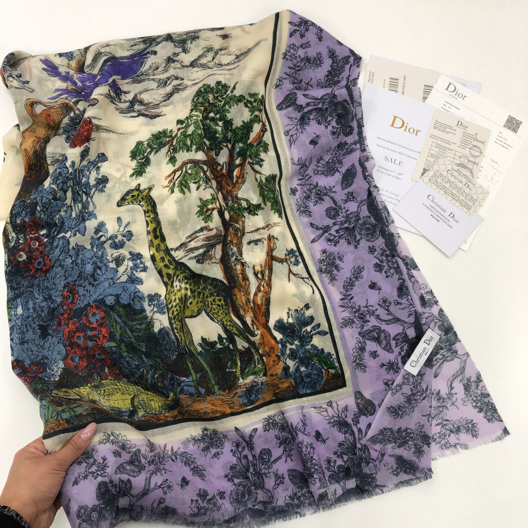 Элегантный шелковый платок Christian Dior LUX-17353 представляет собой настоящее произведение искусства, украшенное живописным принтом с изображением жирафа, аллигатора и тропических цветов. Эффектный дизайн и роскошный материал делают этот аксессуар идеальным дополнением к любому образу, придавая ему изысканность и шарм.