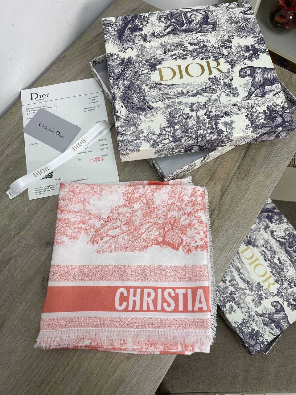 Этот платок Christian Dior LUX-63082 отличается утонченным дизайном и высоким качеством исполнения, что характерно для бренда Christian Dior. Элегантный принт с изображением ветвей и надписью "CHRISTIAN" делает его изысканным аксессуаром. Такой платок станет стильным дополнением к различным образам, придавая им нотку роскоши и утонченности.