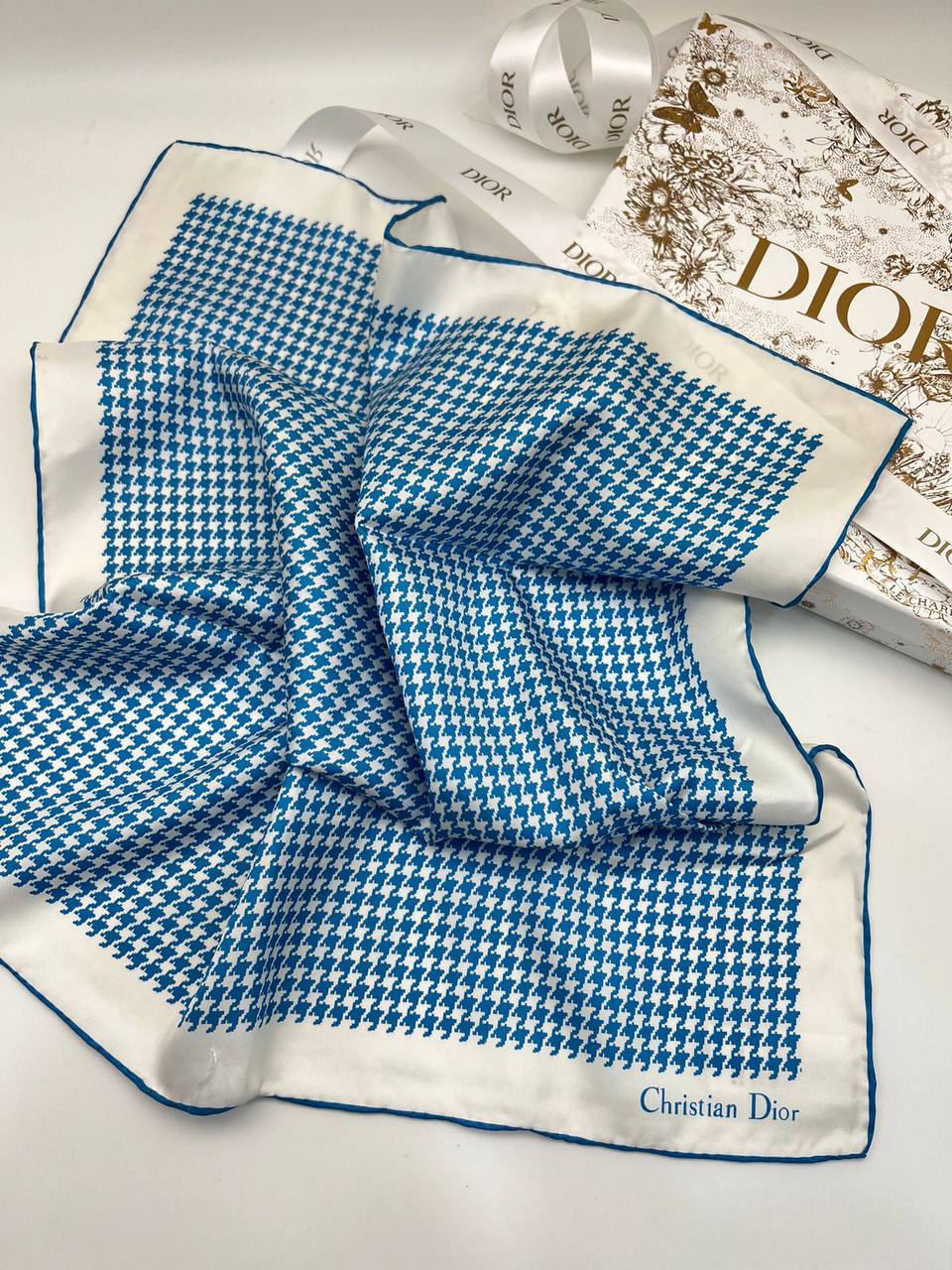 Платок Christian Dior LUX-70785 — это изысканный аксессуар, сочетающий в себе элегантность и утонченность. Платок выполнен в бело-голубых тонах с узором "гусиная лапка". Этот платок станет прекрасным дополнением к любому образу, подчеркивая индивидуальность и стиль.
