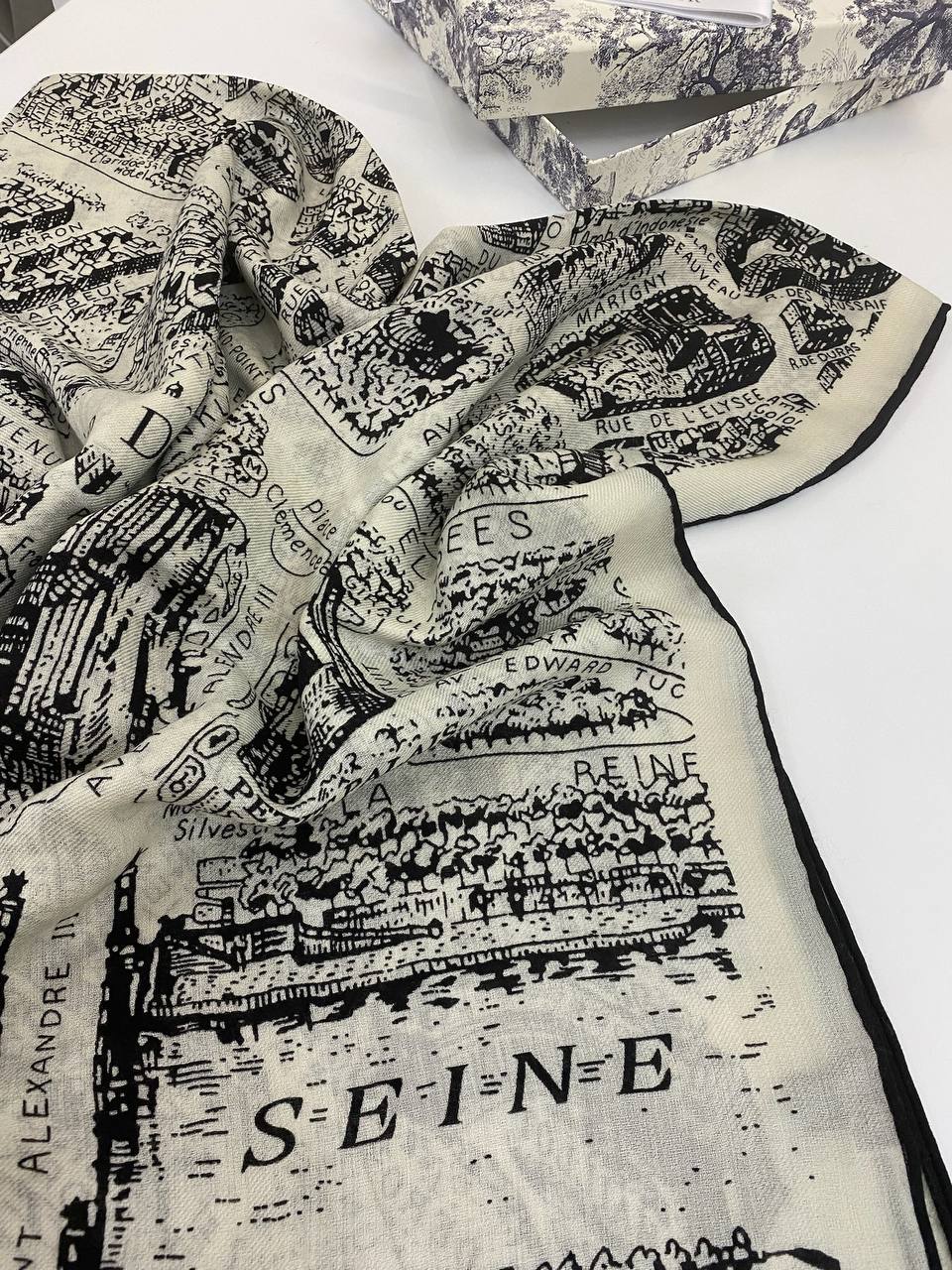 Платок Christian Dior LUX-95725 представляет собой изысканный аксессуар, выполненный в элегантном стиле. Платок выполнен в кремовом цвете с черным рисунком, который напоминает карту. Этот платок станет прекрасным дополнением к любому образу, подчеркивая индивидуальность и изысканный вкус.