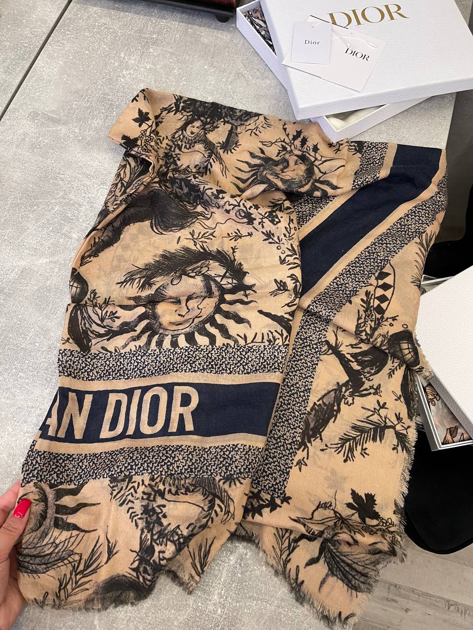 Платок Christian Dior LUX-109021 — это изысканный аксессуар, который сочетает в себе элегантность и искусство. Платок выполнен в бежевых тонах с черным принтом в виде солнца и растений. Он станет прекрасным дополнением к любому образу, подчеркивая индивидуальность и стиль.