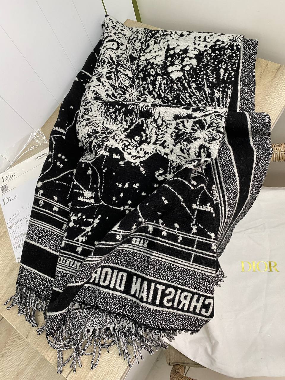 Плед Christian Dior LUX-82853 — это стильный аксессуар, который сочетает в себе элегантность и комфорт. Плед выполнен в черно-белой гамме, декорирован графичным узором и надписями. Он предназначен для использования в качестве декоративного элемента интерьера или для создания уюта в прохладные вечера.