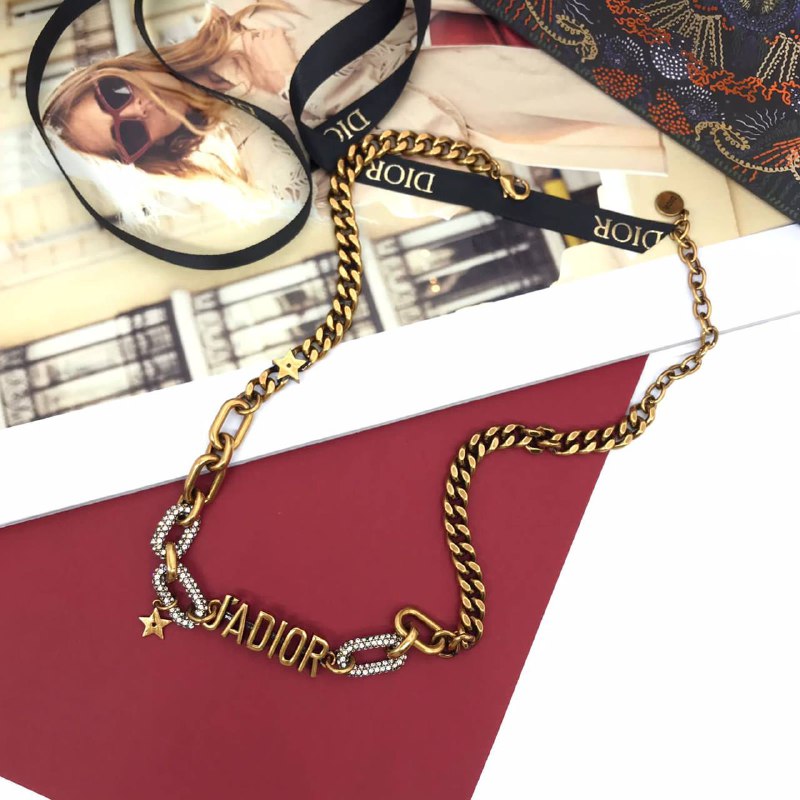 Подвеска Christian Dior LUX-54998 представляет собой элегантное украшение, выполненное в узнаваемом стиле бренда. Цепочка с крупными звеньями дополнена изящной надписью "J`ADIOR", инкрустированной мелкими кристаллами, а также подвеской в виде звезды, что придает изделию особую изысканность и шарм.
