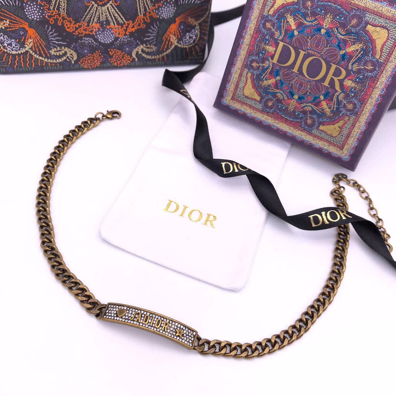 Подвеска Christian Dior LUX-63198 – это элегантный аксессуар, выполненный в винтажном стиле. Цепочка средней толщины имеет золотистый оттенок, а центральная часть украшена мелкими сверкающими камнями, создающими надпись "J`ADIOR". Эта подвеска идеально дополнит как повседневный, так и вечерний образ, придавая ему изысканности.