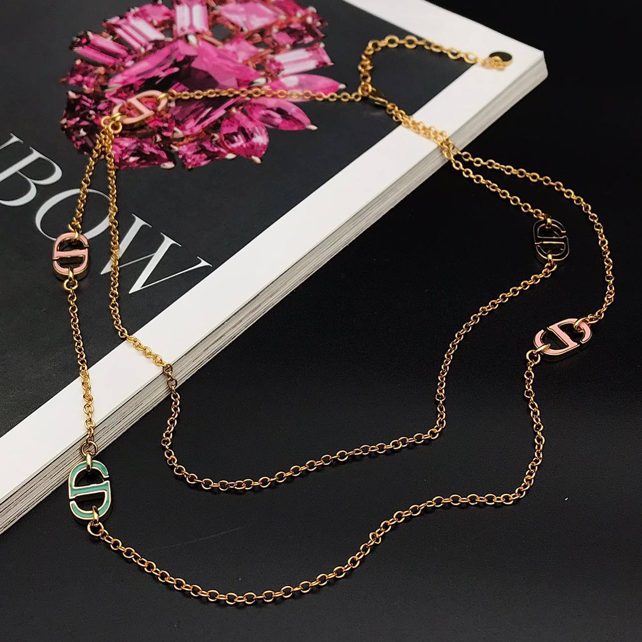 Подвеска Christian Dior LUX-91821 выполнена в элегантном стиле, с изысканным дизайном. Цепочка золотистого цвета с подвесками в виде логотипа бренда, внутри которого вставки разных цветов. Данное украшение станет отличным дополнением к любому образу.