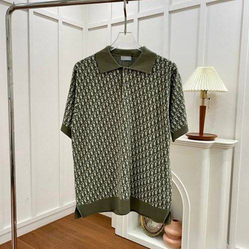 Поло Christian Dior LUX-103964 — элегантное поло в классическом стиле. Зелёный цвет и сложный узор делают эту модель изысканной и подходящей для различных образов. Этот предмет гардероба может стать основой как для повседневных, так и для более формальных ансамблей.