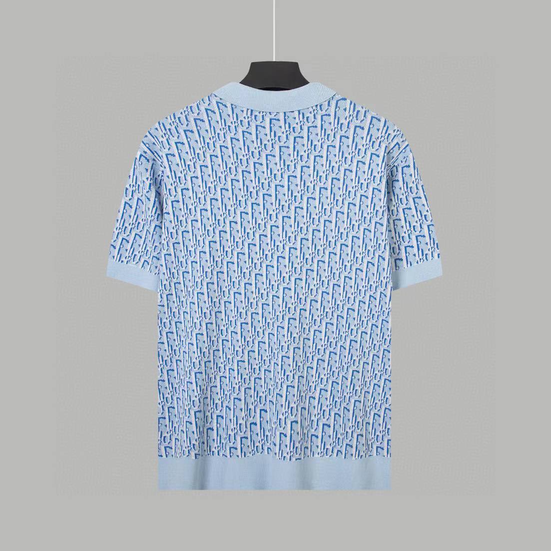 Поло Christian Dior LUX-106940 представляет собой элегантный предмет гардероба в повседневном стиле. Голубой цвет с узором логотипа бренда придает изделию изысканность. Это поло идеально подходит для создания стильных образов в теплое время года.