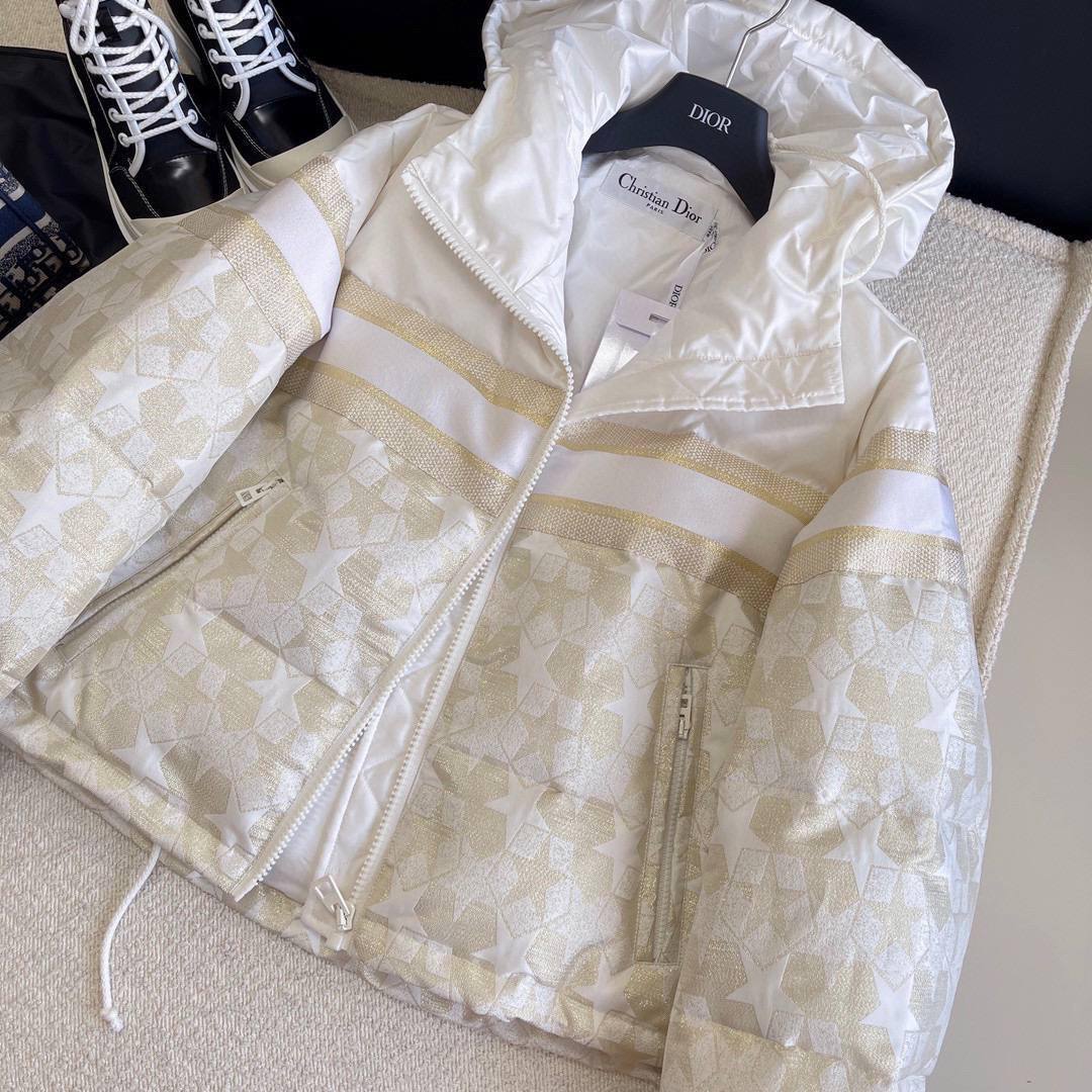 Пуховик Christian Dior LUX-77059 — это воплощение изысканности и стиля от известного бренда. Белый пуховик с золотистыми акцентами и узором в виде звезд, создает элегантный и современный образ. Идеально подходит для создания ярких и запоминающихся образов в холодное время года.