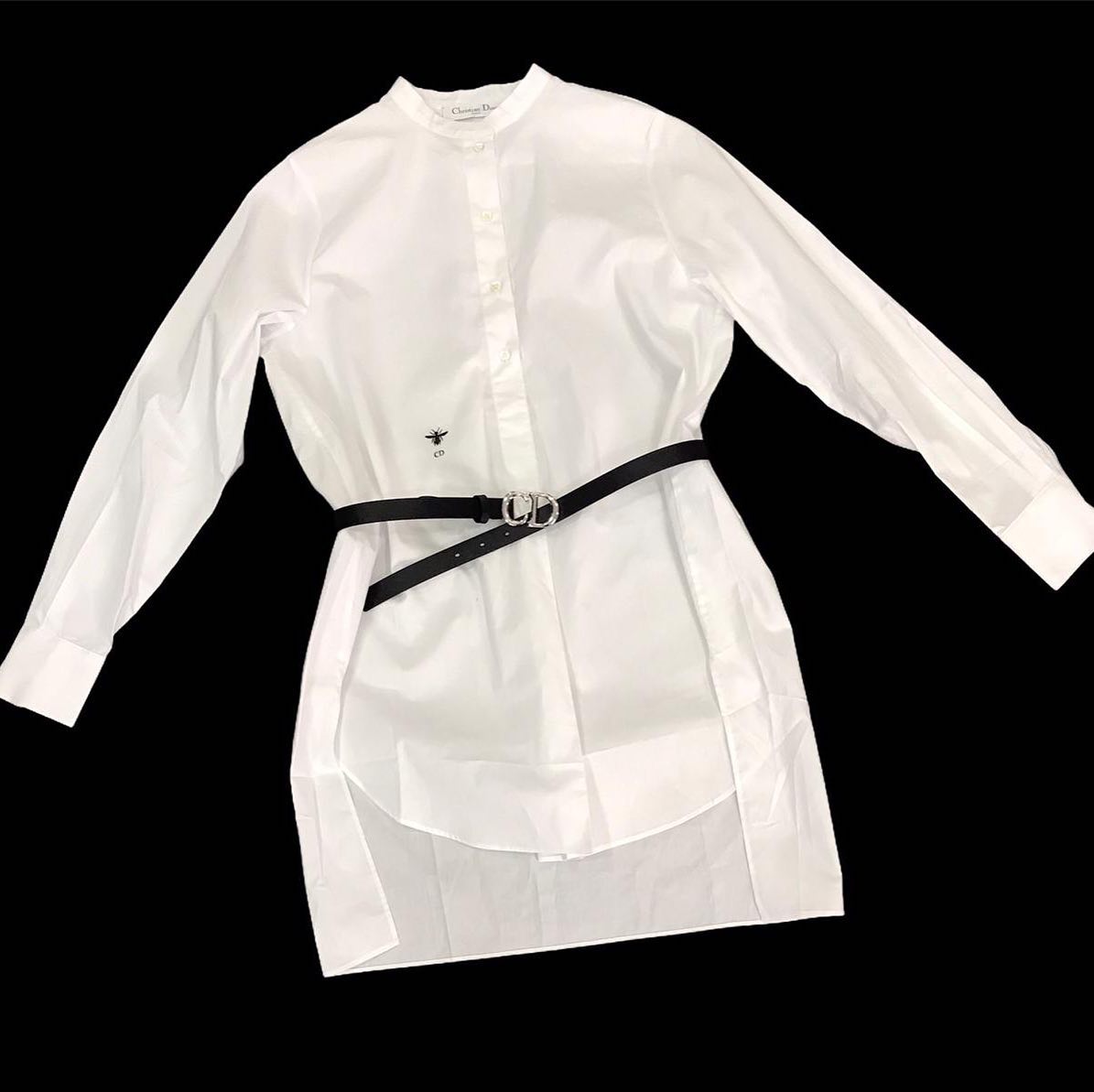 Эта белая рубашка Christian Dior LUX-46775 представляет собой воплощение элегантности и утонченного стиля. Свободный крой, классический воротник-стойка и минималистичный дизайн с акцентом на вышивку пчелы и инициалы CD делают ее универсальным элементом гардероба. Аккуратный черный ремень с логотипом CD подчеркивает силуэт, добавляя образу завершенность.