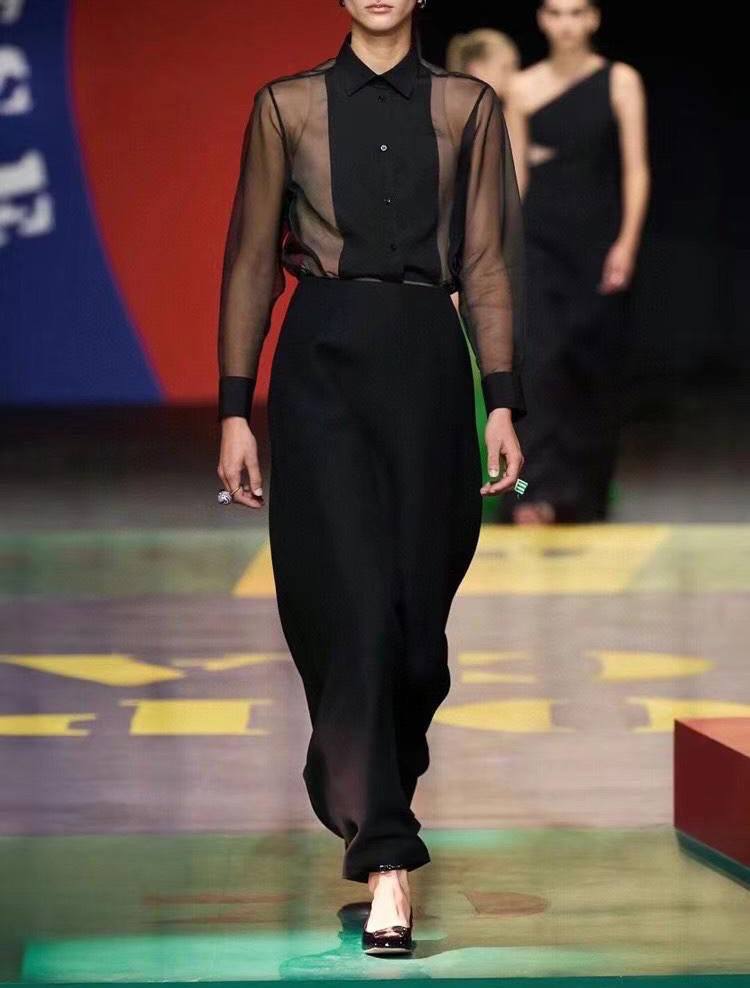 Элегантная черная рубашка Christian Dior LUX-68519 — воплощение изысканного стиля. Полупрозрачная ткань и контрастная вставка создают утонченный образ, подходящий как для официальных мероприятий, так и для создания эффектных вечерних нарядов. Эта рубашка идеально дополнит ваш гардероб.
