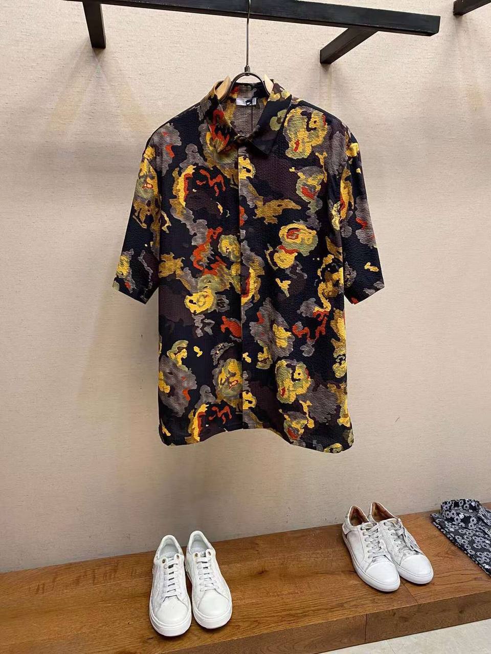 Рубашка Christian Dior LUX-91391 представляет собой стильный элемент гардероба с оригинальным дизайном. Рубашка выполнена в классическом стиле с короткими рукавами и имеет яркий камуфляжный принт в различных оттенках. Она подойдёт для создания как повседневных, так и более формальных образов.