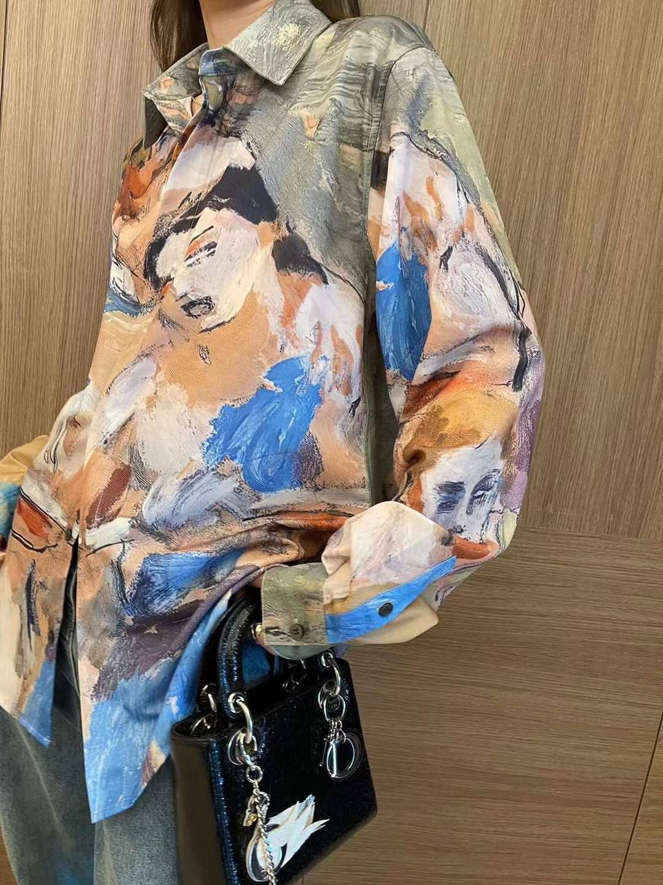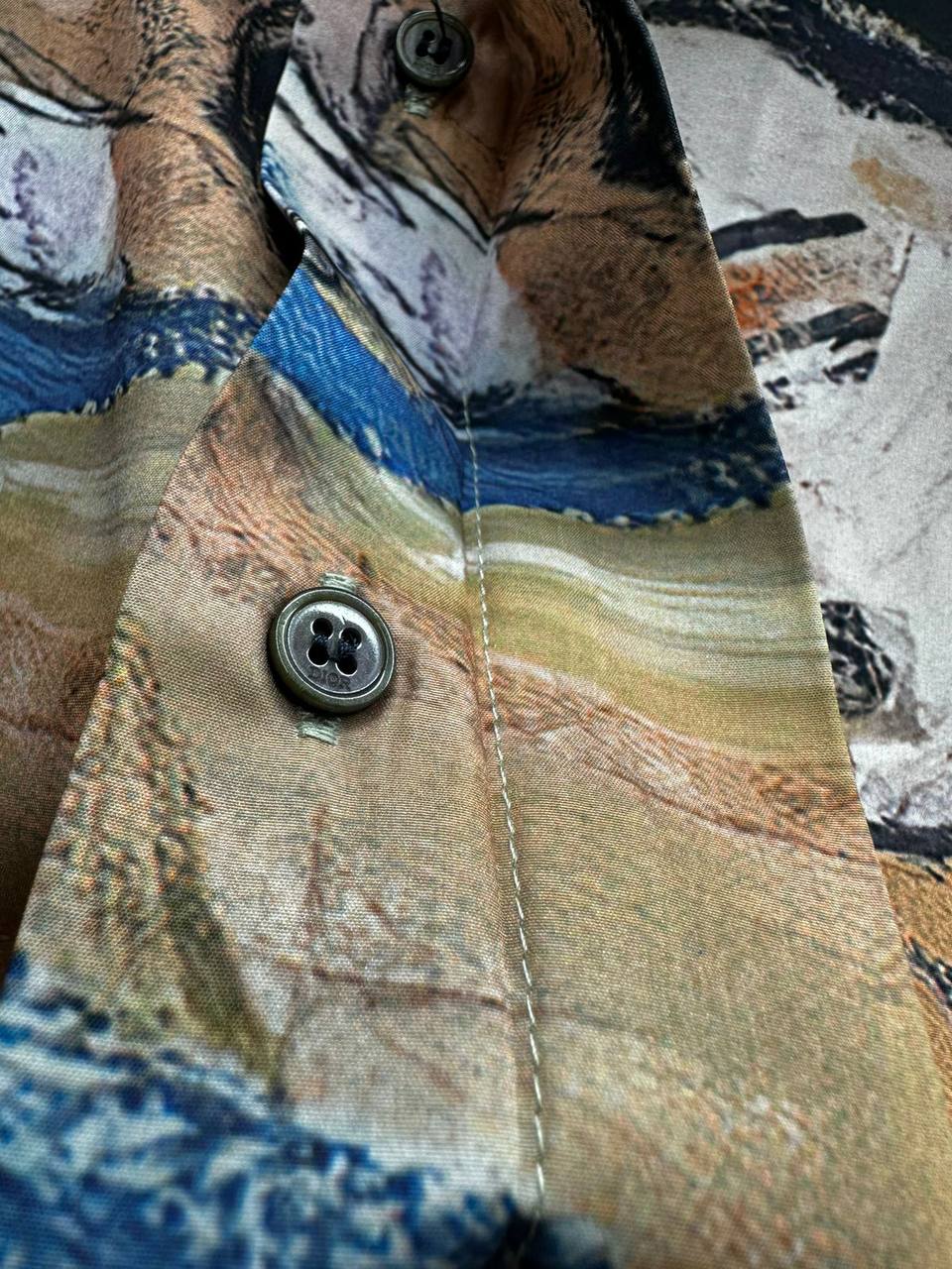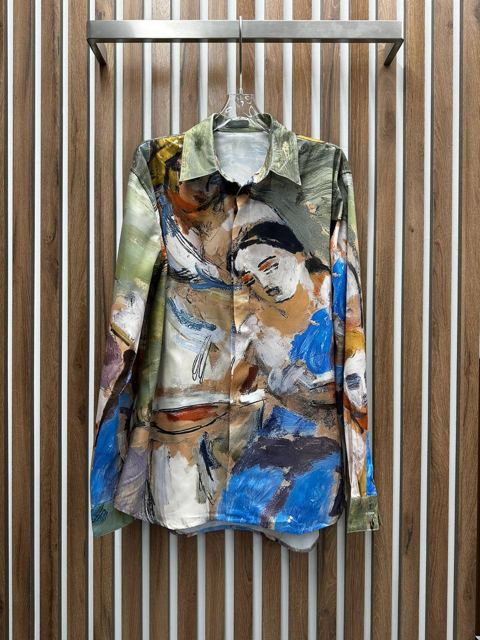 Рубашка Christian Dior LUX-91685 представляет собой стильный элемент гардероба с оригинальным дизайном. Она выполнена в ярких тонах, с абстрактным принтом, напоминающим художественную роспись. Рубашка предназначена для повседневной носки, она способна добавить индивидуальности в любой образ.