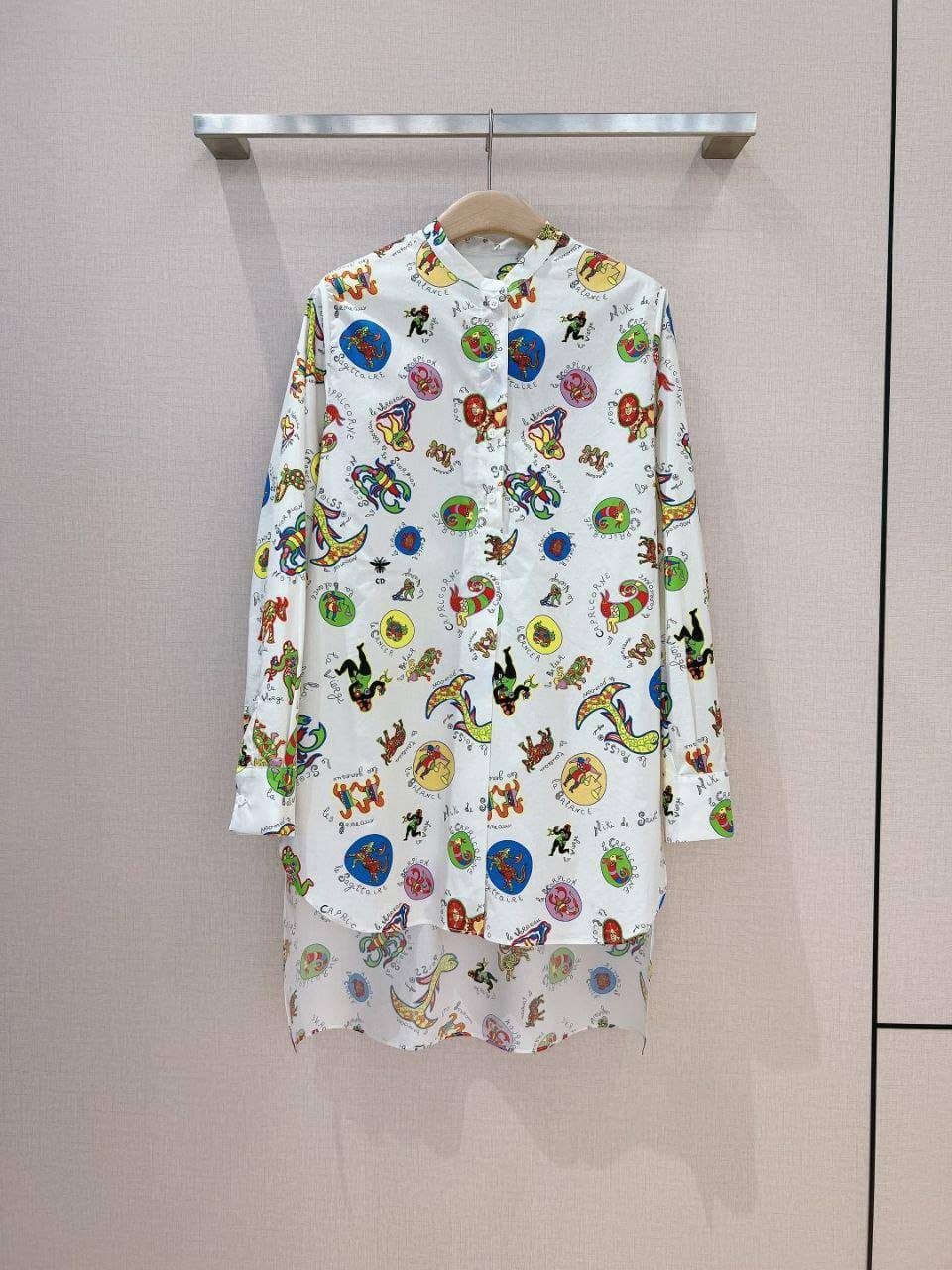 Christian Dior рубашка LUX-120262 выполнена в ярком и необычном дизайне. Белая рубашка с длинными рукавами украшена разноцветным принтом с изображением знаков зодиака. Это отличный выбор для тех, кто любит выделяться из толпы.